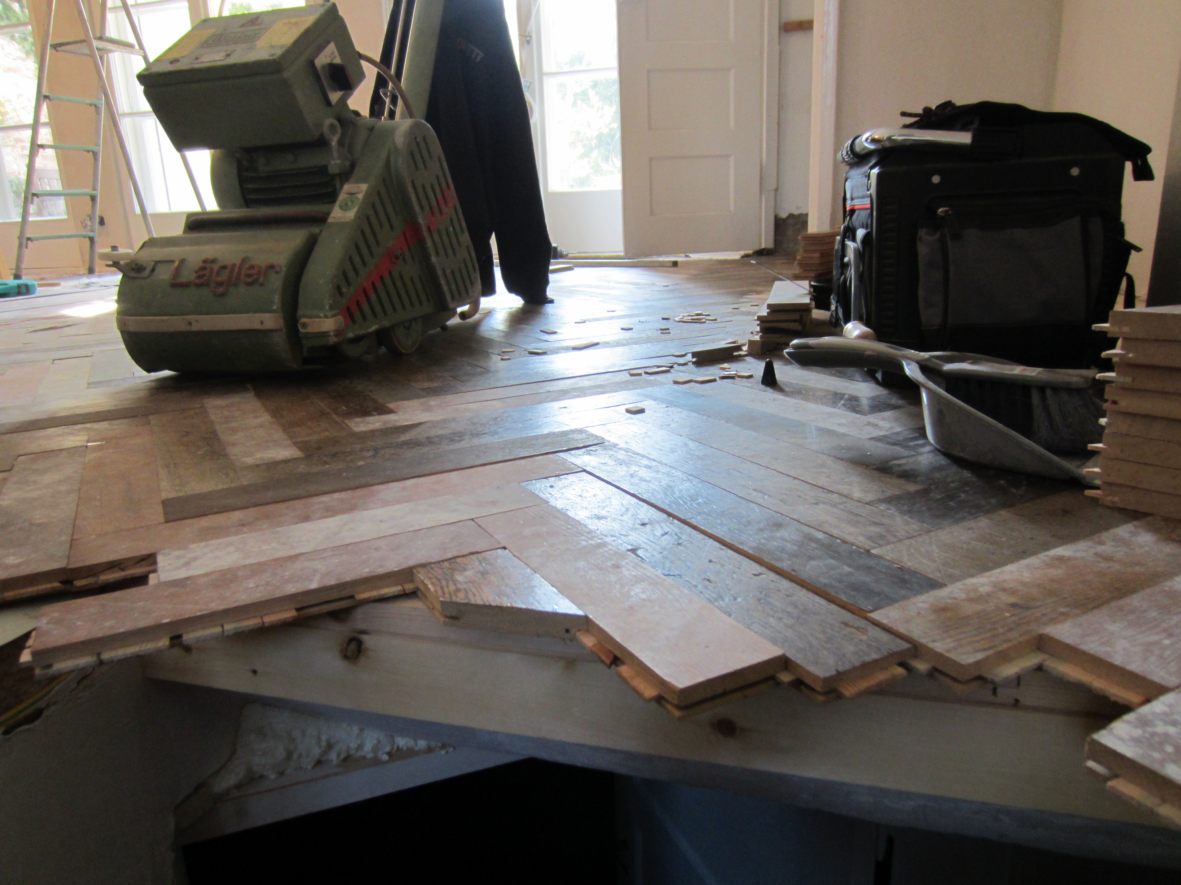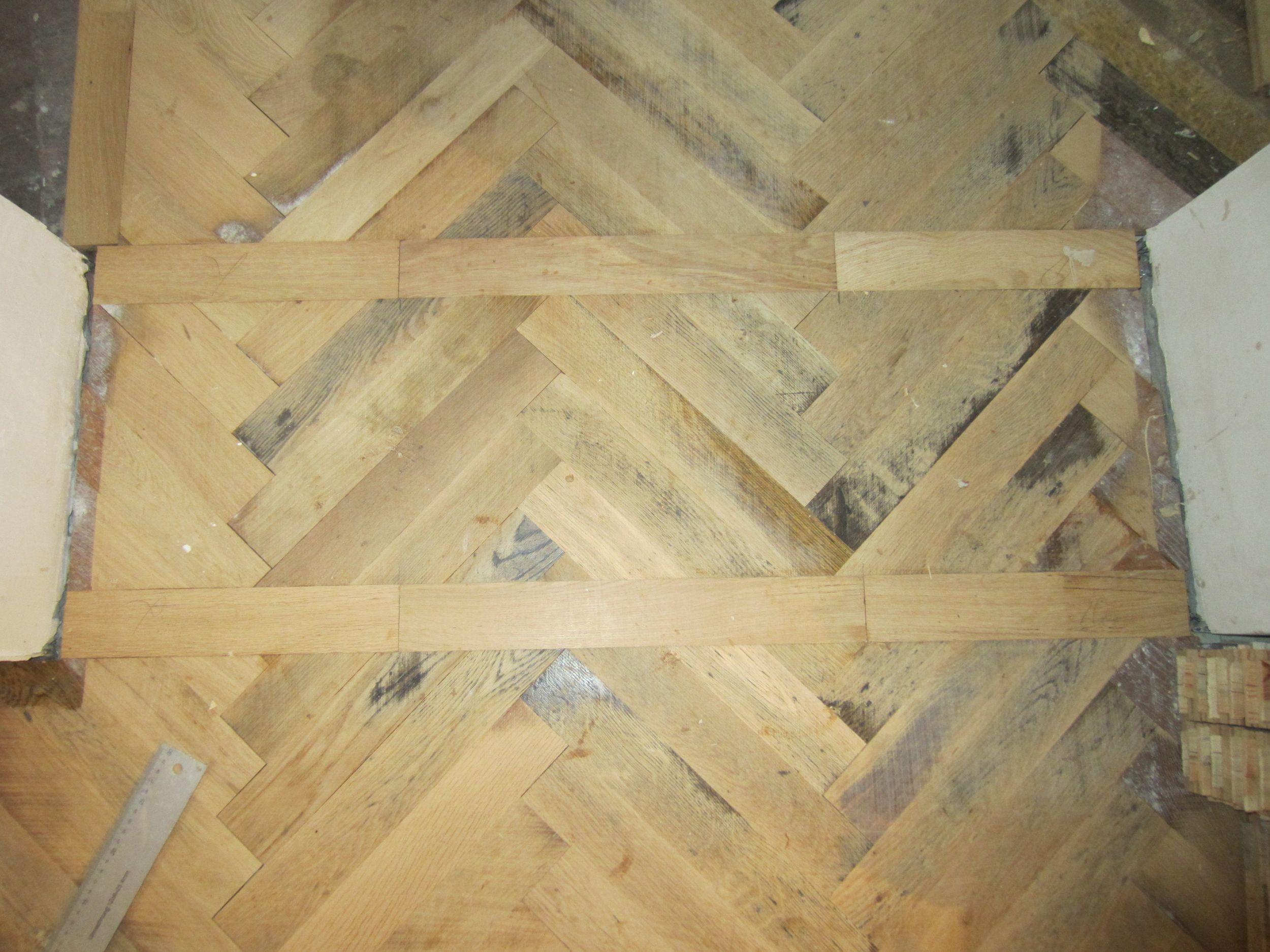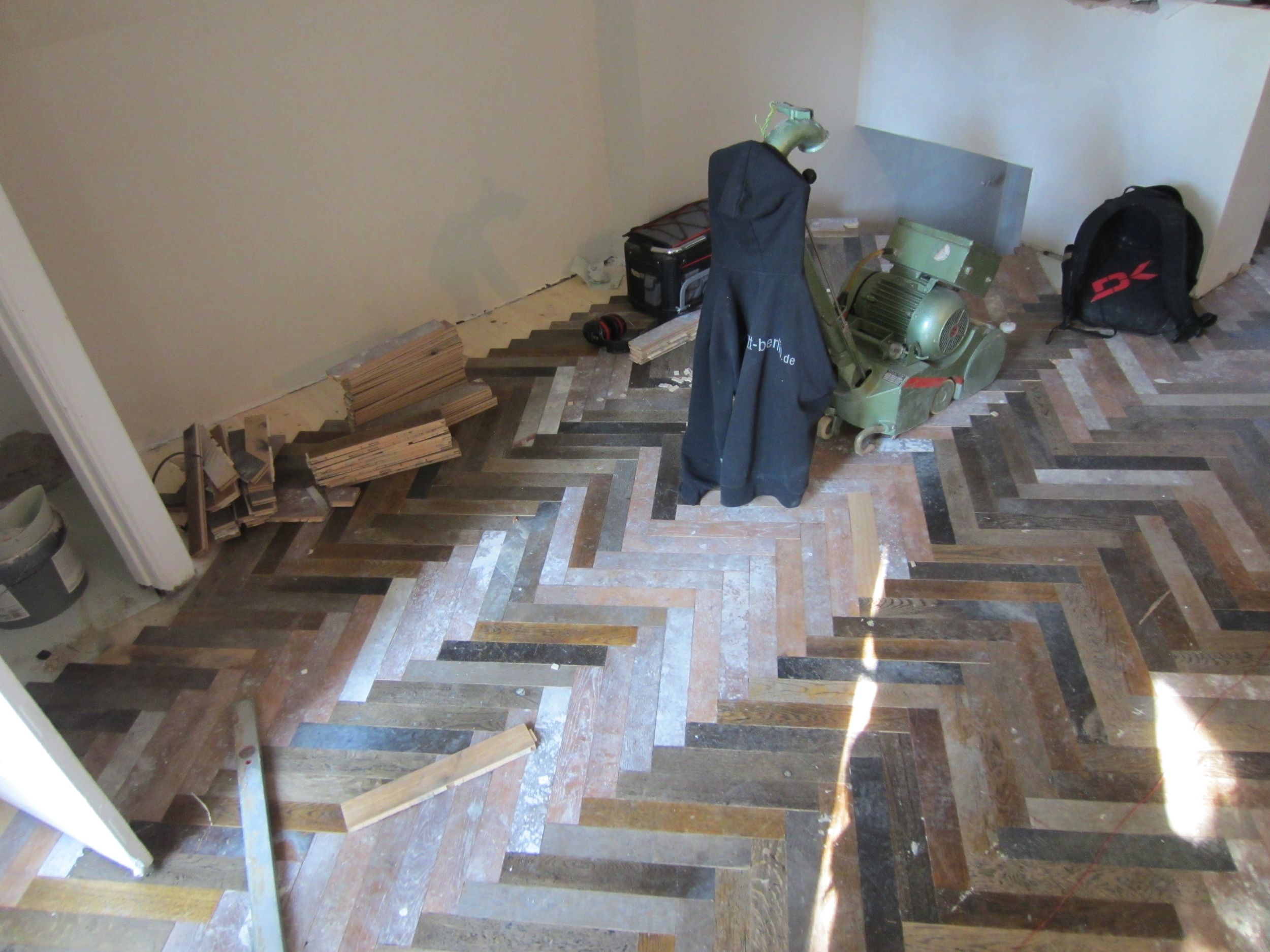Es muss nicht immer ein NEUER Parkettstab verlegt werden! Bei einer Grundrissveränderung in einem denkmalgeschützten Reihenhaus konnten wir die neu geschaffenen Wohnfläche mit historischen Parkettstäben ergänzen. Von uns wurde der komplette Deckenaufbau neu hergestellt um Höhendifferenzen zwischen dem neuen und vorhandenen Fußboden zu vermeiden. Historische Eichen-Stäbe, welche bei einem anderem Bauvorhaben aufgenommen wurden, haben hier ein neues Zuhause gefunden. Die Parkettstäbe wurden auf das Bestandsmaß zugeschnitten und im vorhandenem Fischgratmuster verlegt, geschliffen und geölt.