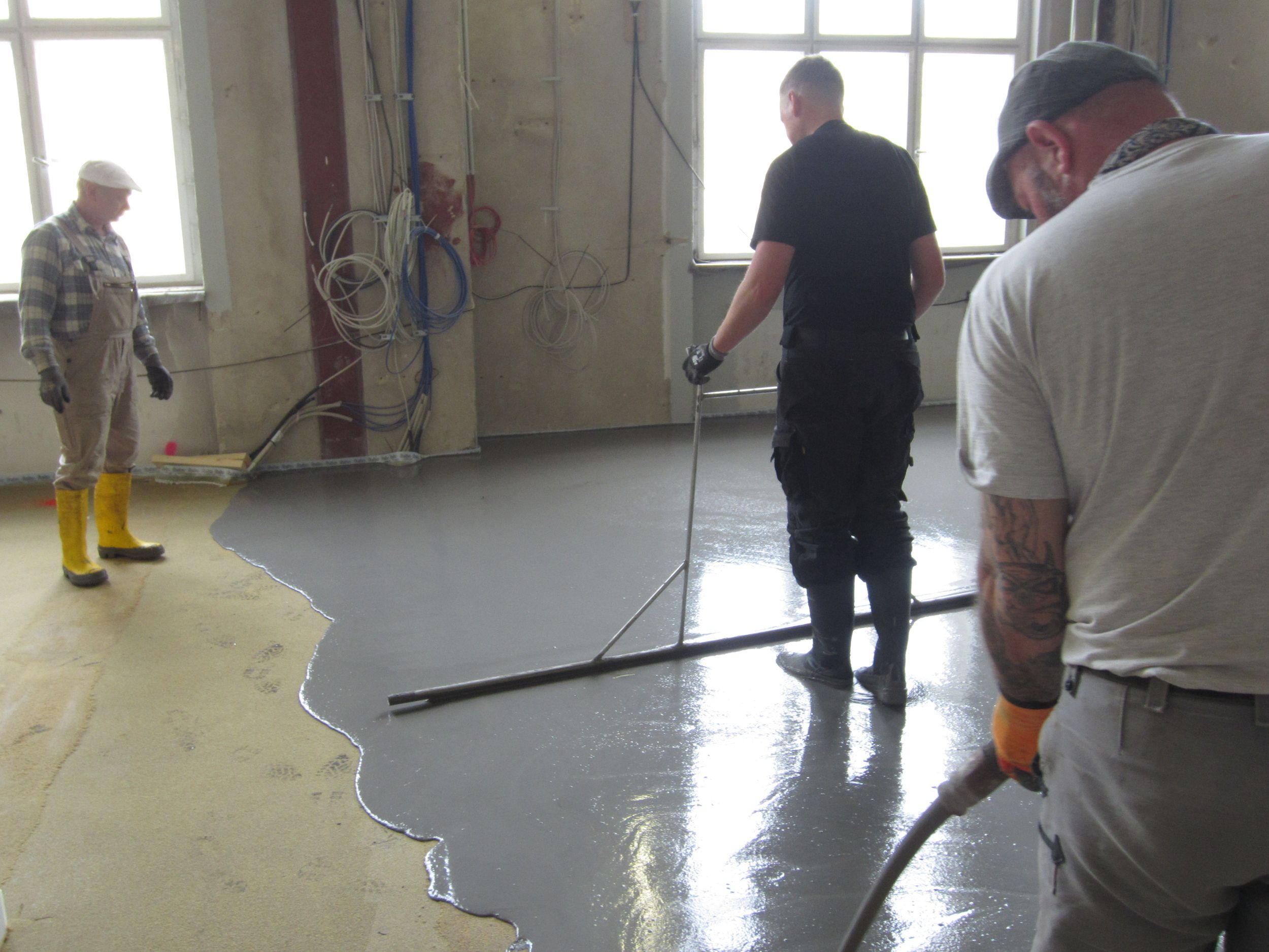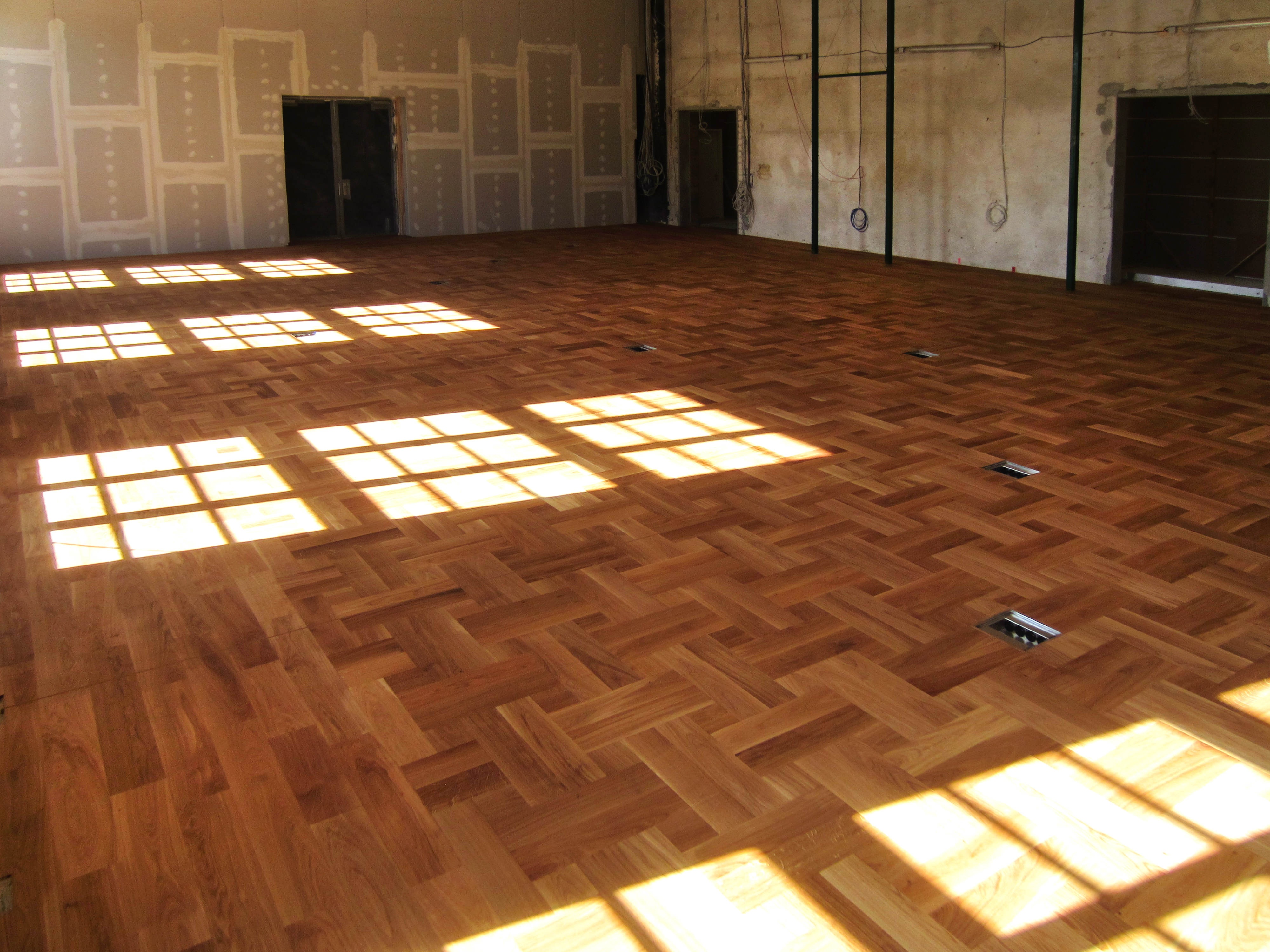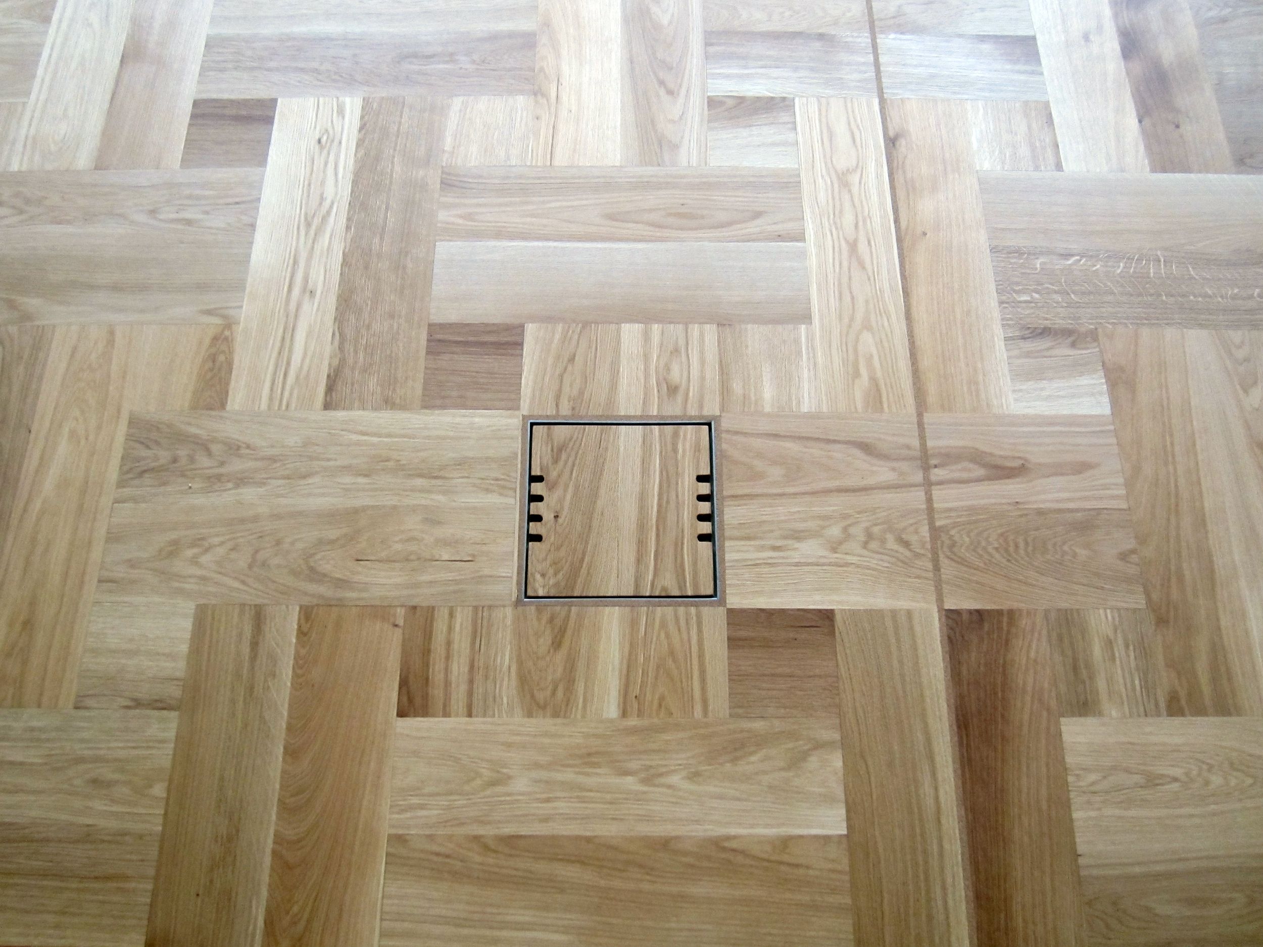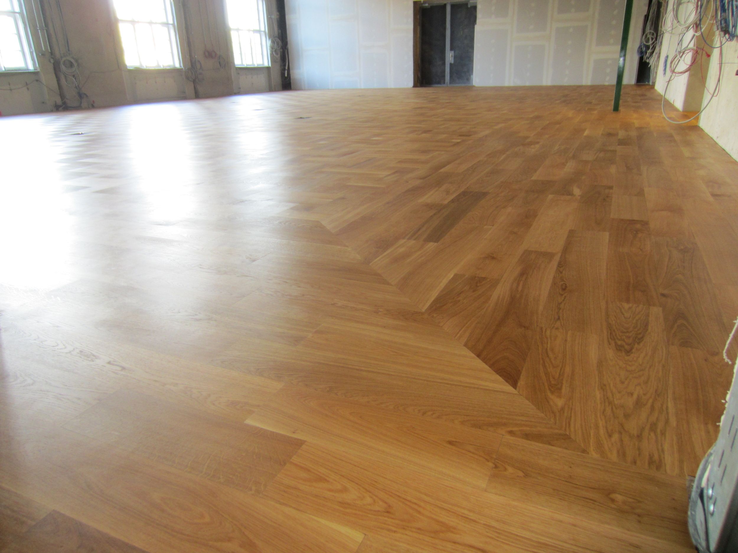 Bei diesem Projekt haben wir nicht nur Parkett verlegt, sondern auch den vorhandenen Estrich saniert. Alte Ausgleichsschichten wurden abgefräst und ein neuer Verbundestrich eingebracht. Der verlegte Flechtboden wurde als Sondermaß, passend zum vorhandenen Bodentank-Raster angefertigt.