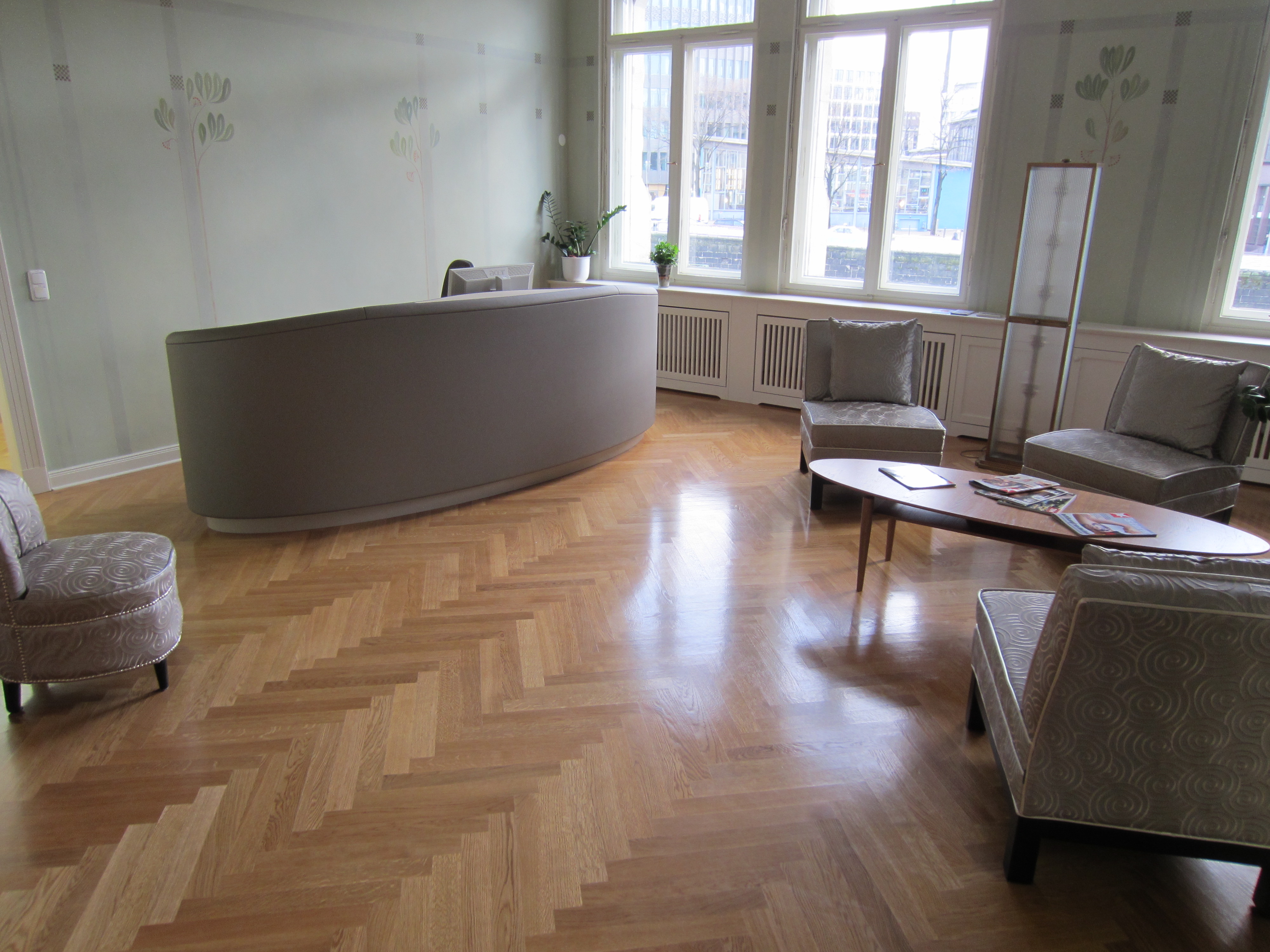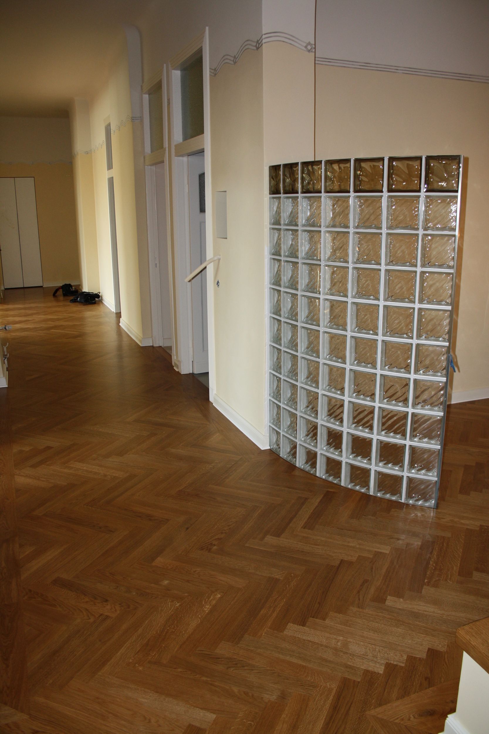 In einer Berliner Zahnarztpraxis wurde von uns der komplette Unterboden hergerichtet, ein Stabparkettboden aus Eiche im Fischgratmuster verlegt, welches durch eine Eichendiele als Fries eingefasst wurde. Die Oberflächenbehandlung wurde mit einem hochwertigen Lacksystem der Firma Loba ausgeführt.